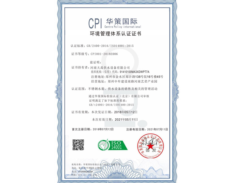 河南大禹供水設備有限公司是一家不銹鋼水箱及供水設備的設計、制作、安裝和調試的專業公司,主要產品有不銹鋼保溫水箱,組合式不銹鋼水箱、生活供水水箱、臥式水箱、消防水箱、圓柱形水箱、無負壓變頻供水設備、消防增壓穩壓設備、恒壓變頻供水設備等,公司擁有先進的生產設備、雄厚的技術力量、穩定的管理隊伍和完善的服務體系,集開發、設計、生產、安裝、售后服務于一體,為客戶提供全方位的優質服務。廣泛用于工礦、單位、住宅···